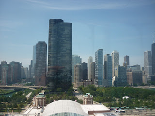 -Sears Tower (I can never remember what the new name is). Holy Freaking Scary. And awesome. Scary awesome. We did the stand on the ledge thingy...and even though I KNOW it's not going to fall off the side of the building, it's still terrifying. Quick photo op (while I had tears in my eyes and Jay was nearly passing out) and then we quickly headed to "safety." :)